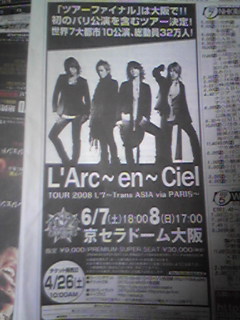 今日も朝日新聞にL'7京セラドームの広告出てました。